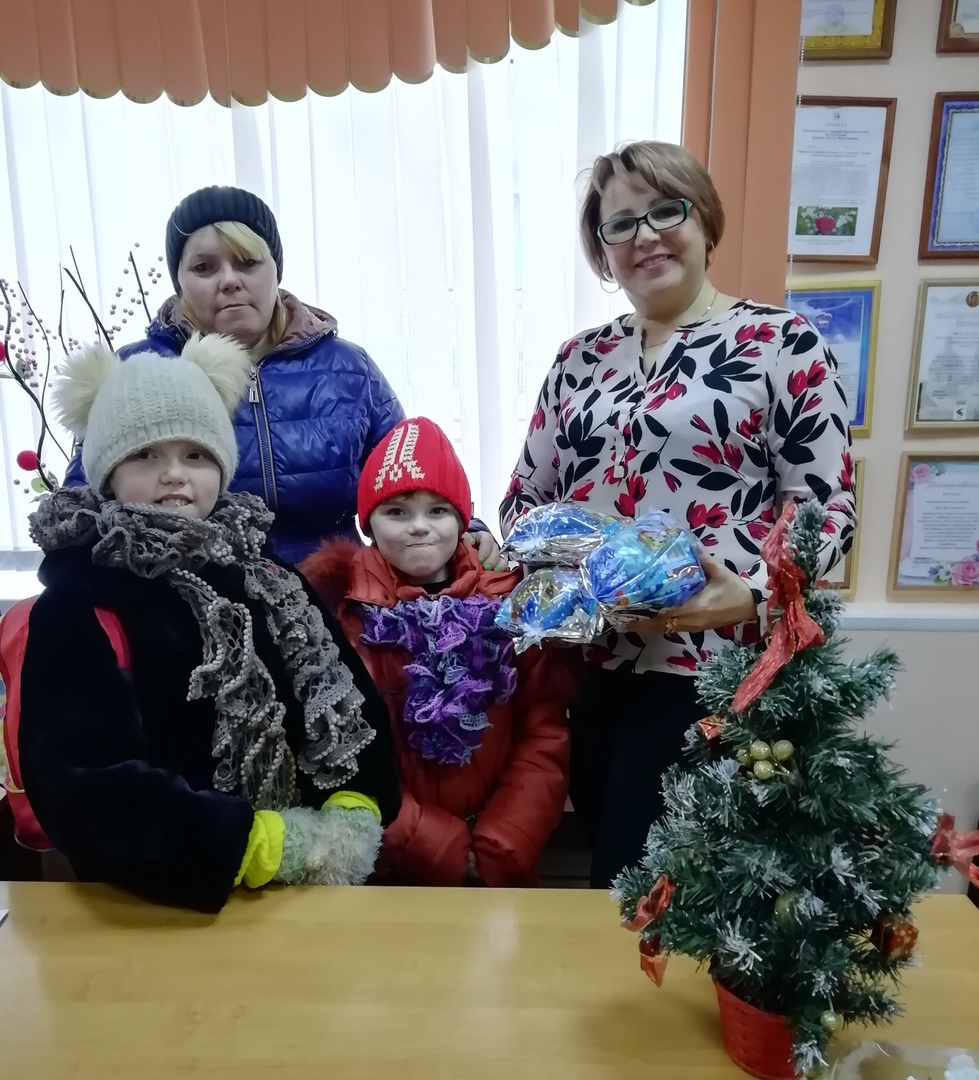Специалисты центра также поздравили семью с наступающими новогодними праздниками и подарили детям сладкие наборы.